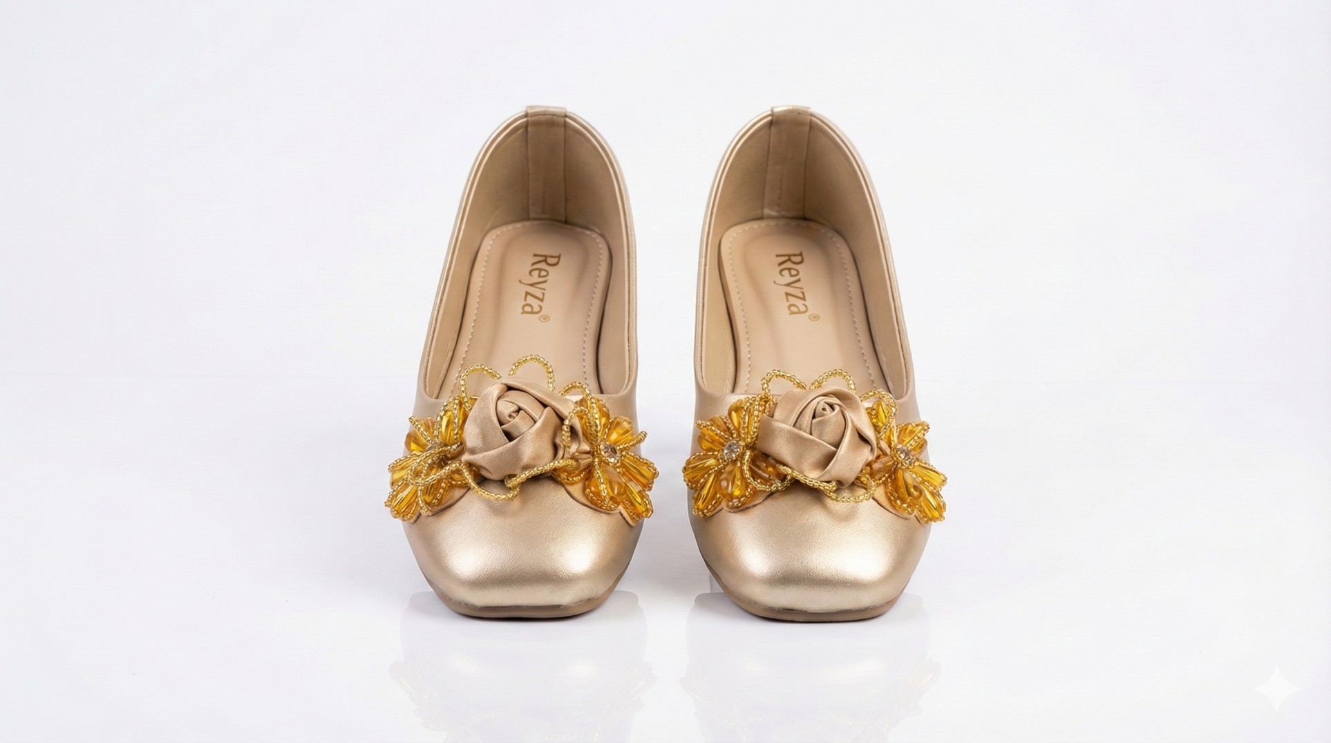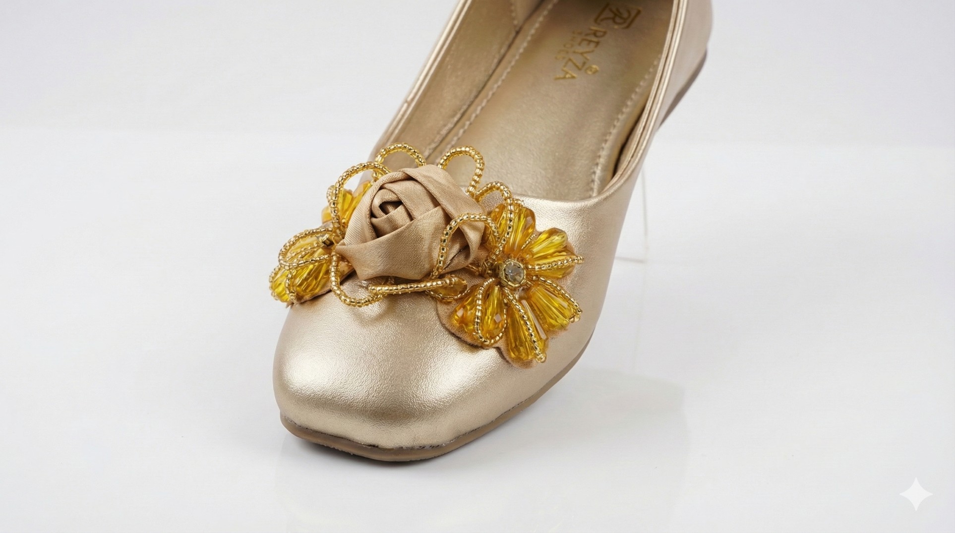 Elevate your traditional and formal wardrobe with the Reyza Golden Bloom collection. These shoes combine the classic silhouette of a modern pump with the intricate artistry of traditional Pakistani craftsmanship.