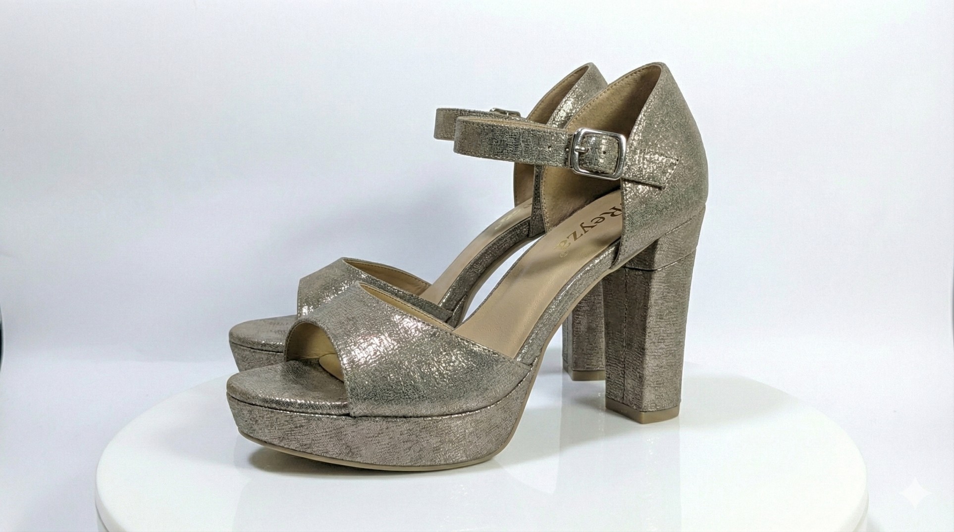 Elevate your footwear collection with the Reyza Metallic Platforms, a masterpiece of elegance and modern design. These sandals feature a bold block heel and a subtle platform sole, engineered to provide height without compromising on stability.